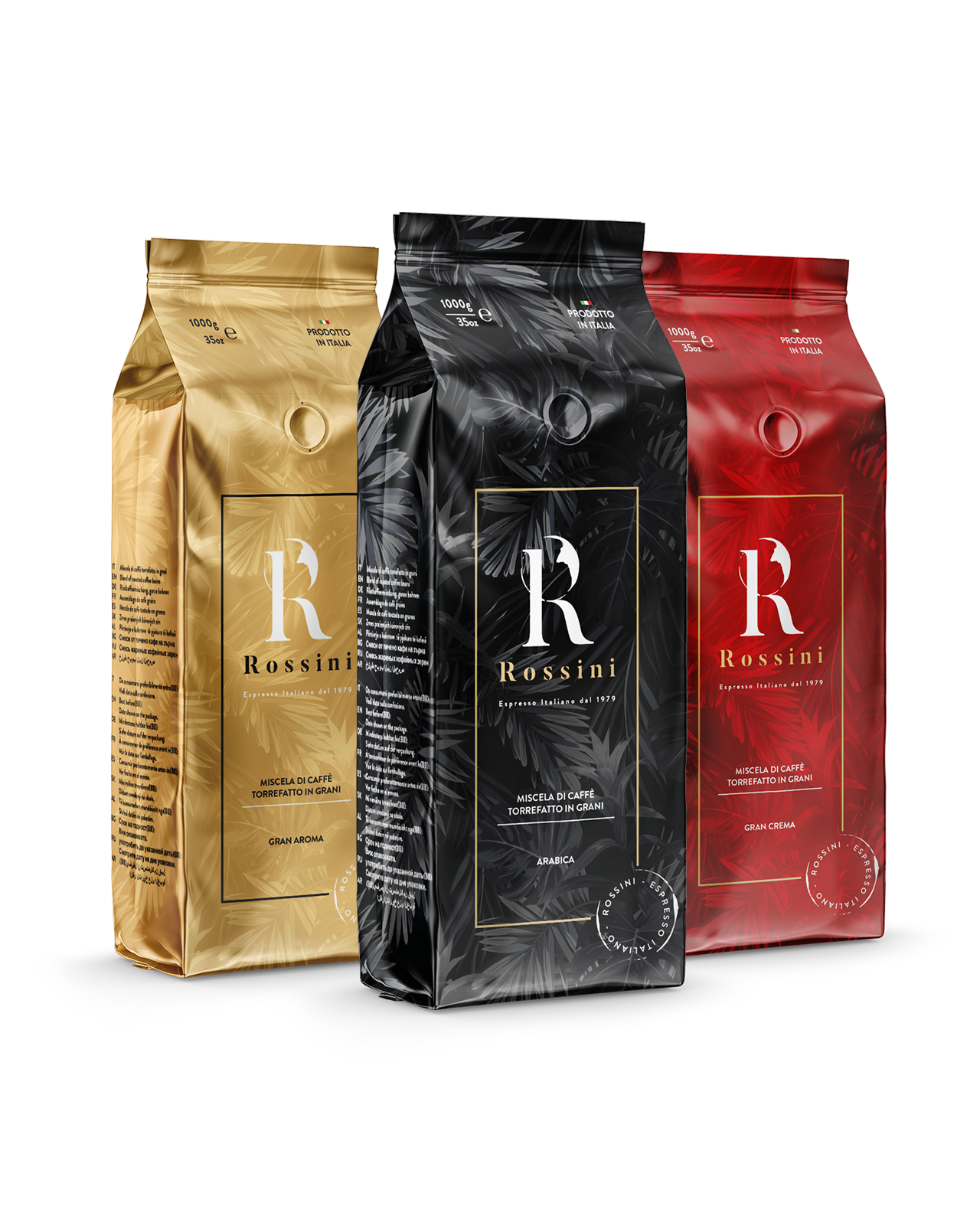 Gran Crema coffee blend selected by hand, and hand-roasted. Packaged in 1000 gram packs.