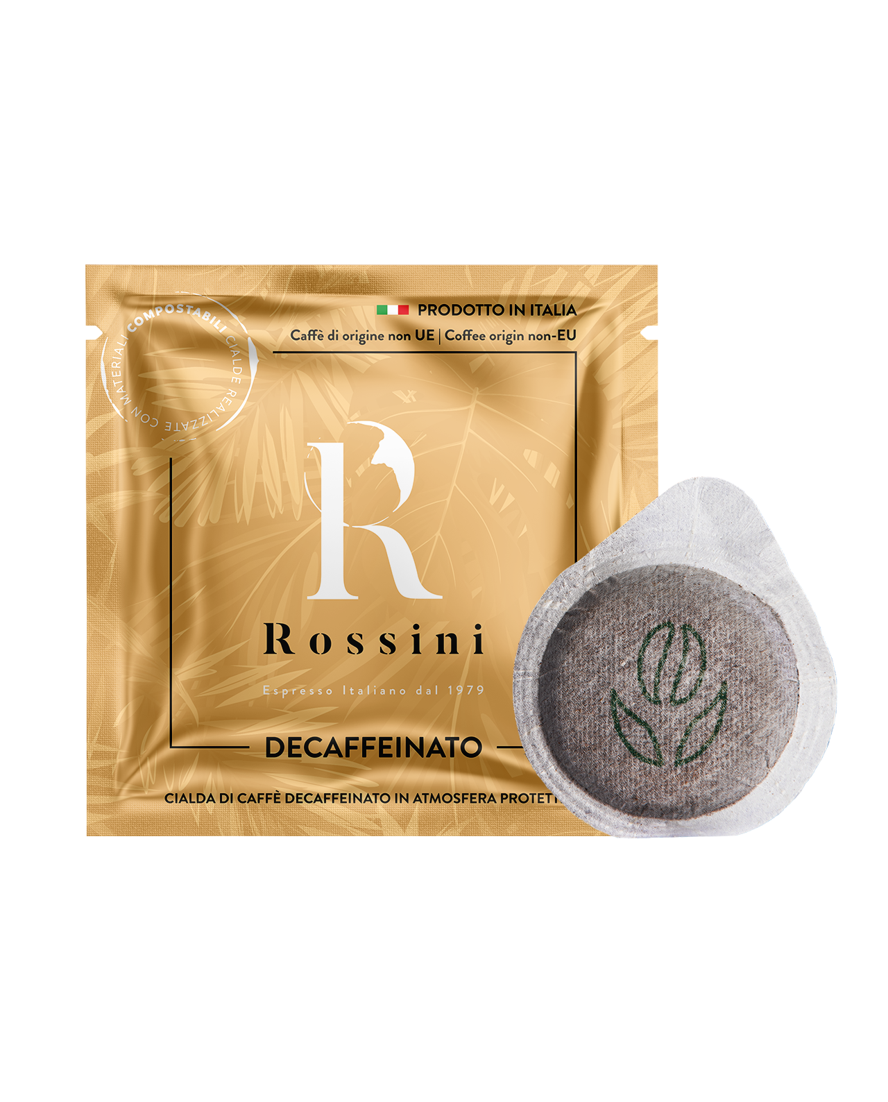 This espresso is perfect for those who do not want to give up the authentic taste of coffee but don’t want the caffeine (not exceeding 0.10%). Caffeine is extracted in a procedure using water vapour and ethyl acetate (organic substance) without the use of acids. Box of 100 pods. Decaffeinated coffee blend selected by hand, and hand-roasted. Packaged in a compostable paper single-dose pod compatible with the ESE44 system in a protective atmosphere.